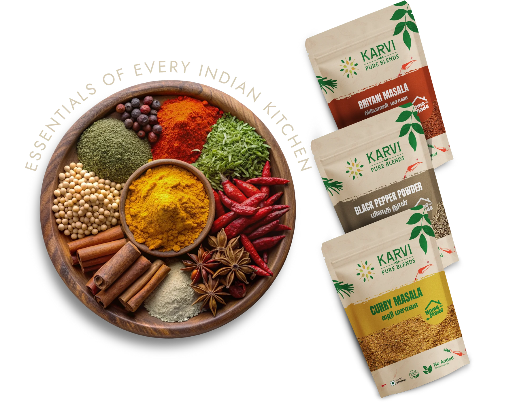 From the fiery heat of our Red Chilli Powder to the earthy aroma of Coriander Powder and the rich, comforting taste of Sambar Powder, every blend is crafted to perfection. At Karvi Pure Blends, we use only pure, sun-dried spices to ensure bold, authentic flavor in every pinch. These aren’t just ingredients they’re the soul of your daily cooking.